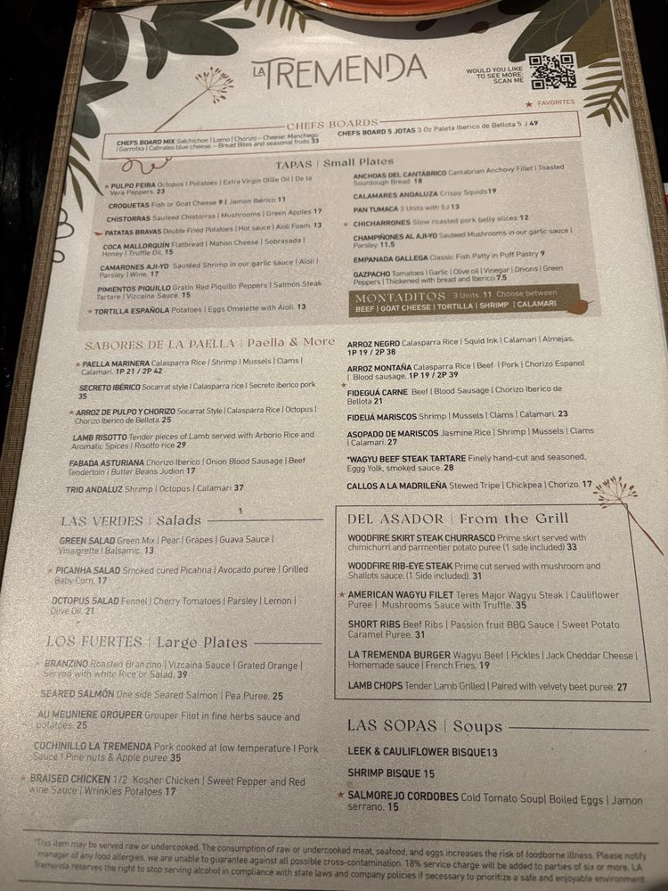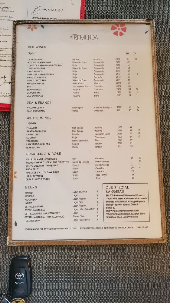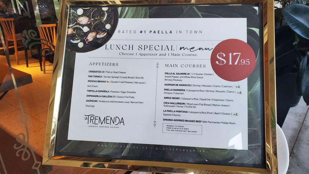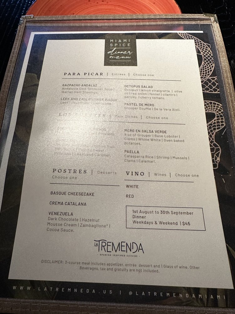 La Tremenda - Best Spanish Restaurant in Miami Menu